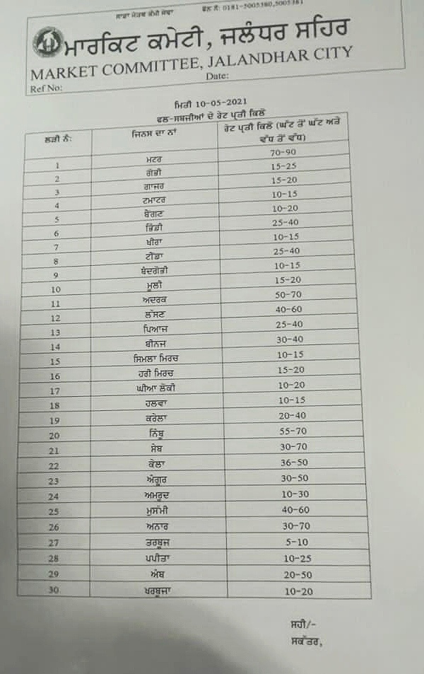 शिकायत करने के लिए मंडी ऑफिसर का नाम और नंबर नीचे दिया गया है