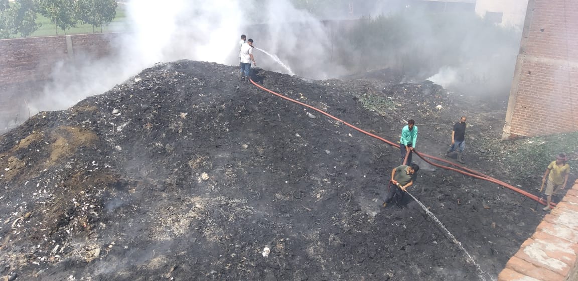 प्राप्त जानकारी के अनुसार शुक्रवार दोपहर बाद पठानकोट रोड पर स्थित मां अन्नपूर्णा ट्रेडिंग कंपनी के स्क्रैप के गोदाम के पीछे लगते खेत में मालिक ने नाड़ को आग लगा दी थी। नाड़ को लगाई हुई आग धीरे-धीरे बढ़ते हुए स्क्रैप के गोदाम तक पहुंच गई। जिस कारण गोदाम में पड़ा हुआ स्क्रैप पूरी तरह से जलकर राख हो गया। गोदाम में लगी आग को देख गोदाम मालिक यशपाल बठला ने तुरंत ही दमकल विभाग को सूचना दी। सूचना मिलते ही दमकल विभाग की गाड़ियां मौके पर पहुंची और आग बुझानी शुरु की। आग लगने के कारण कितना नुकसान हुआ है उसका अभी पता नहीं चल पाया है।