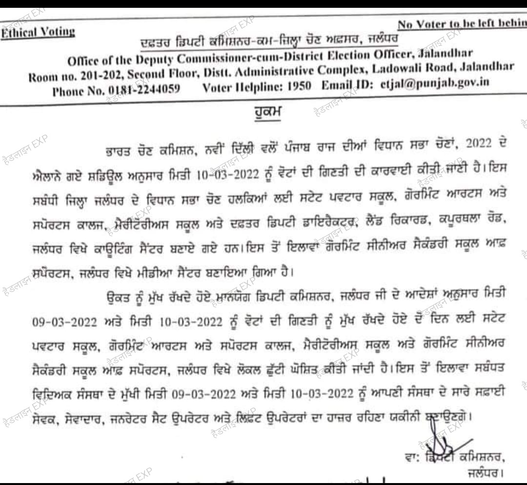 Home›पंजाब›दोआबा›जालंधर›*👉🏻 मतों की गिनती को लेकर 2 दिन ये स्कूल,कॉलेज व अन्य संस्थान रहेंगे बंद* *👉🏻 देखें आदेशों की प्रति सिर्फ हैडलाइन एक्सप्रेस पर 👇🏻*