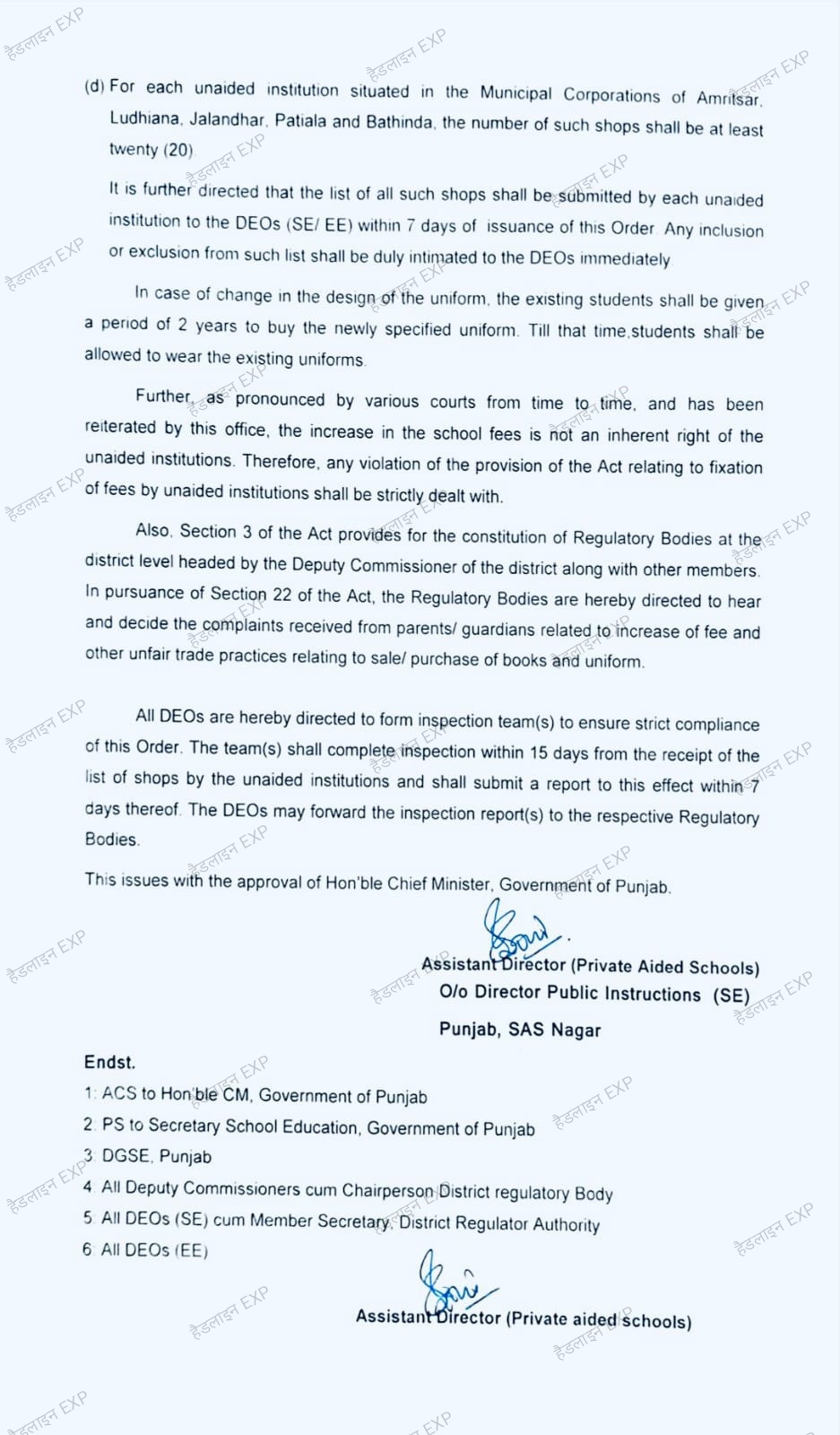 *👉🏻 पंजाब सरकार द्वारा निजी स्कूलों को जारी हुए निर्देश* *👉🏻 स्कूल में किताबों व वर्दी की दुकानों की लिस्ट लगानी होगी, विशेष दुकान से ही किताबें और वर्दी खरीदने के लिए दबाव नहीं डाल सकेंगे निजी स्कूल:-शिक्षा मंत्री* *👉🏻 निजी स्कूलों को जारी की गई हिदायतों को पढ़ने के लिए नीचे दिए गए हैडलाइन एक्सप्रेस के लिंक को क्लिक करें 👇🏻*