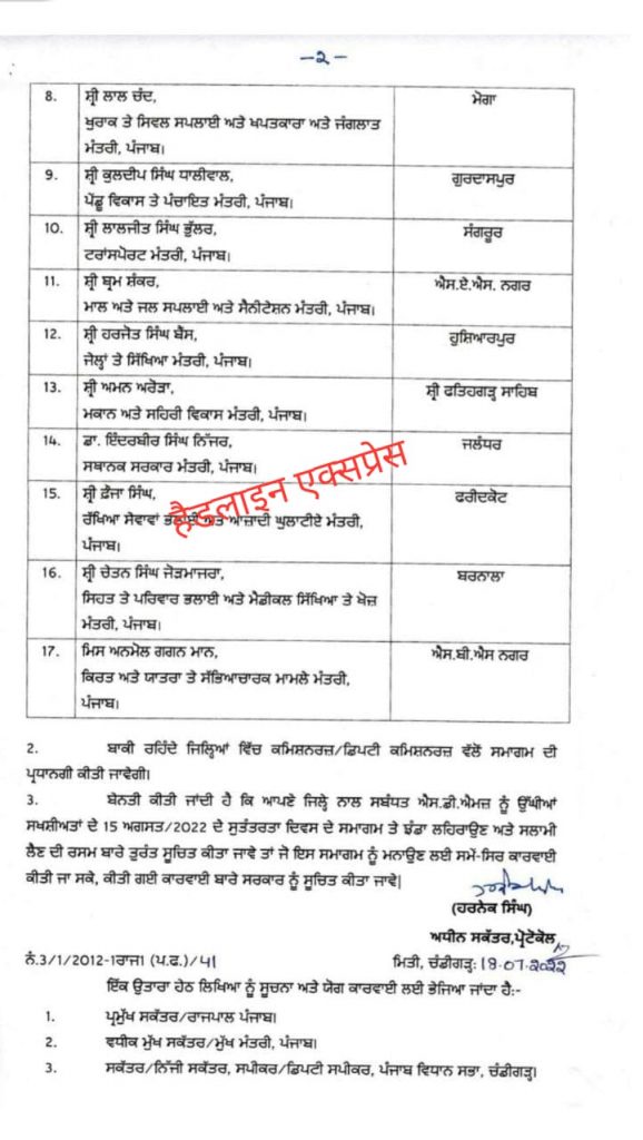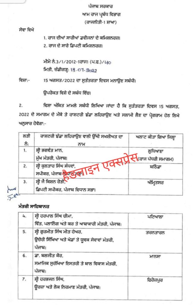 👉🏻 15 अगस्त को भगवंत मान लुधियाना और डॉ. इंदरबीर सिंह निज्जर जालंधर में फहराएंगे तिरंगा
