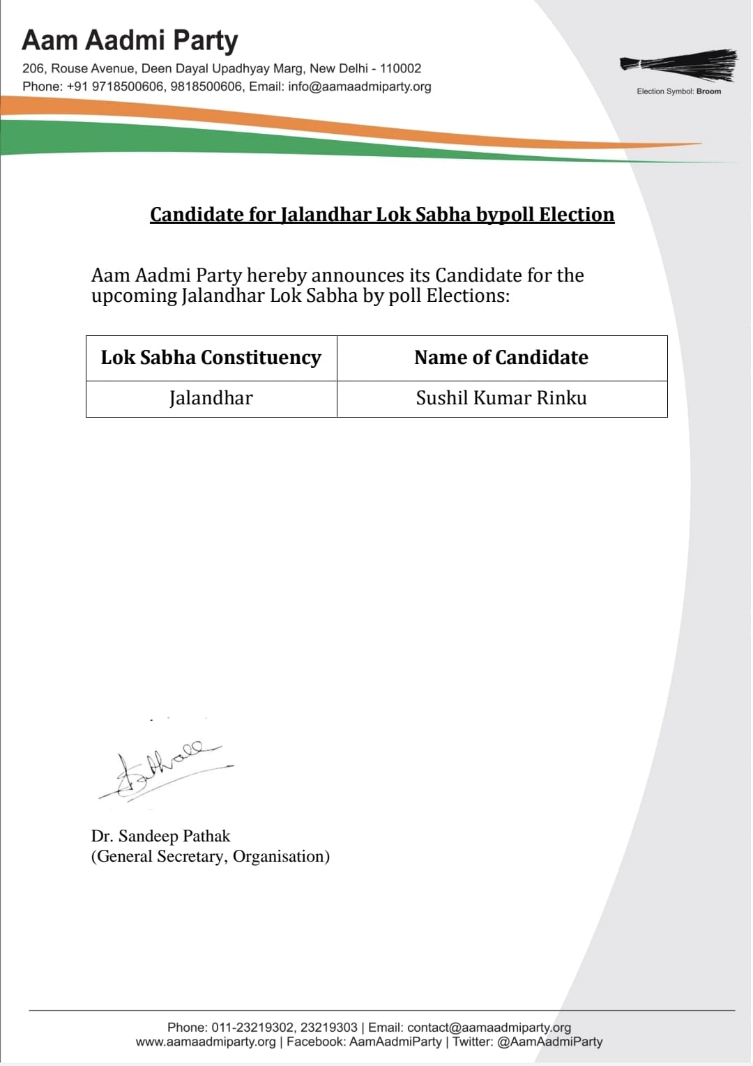 👉🏻 जालंधर लोकसभा उपचुनाव में आम आदमी पार्टी ने सुशील रिंकू को उम्मीदवार किया घोषित, क्या रिंकू घर के भेदियों से बचा पाएंगे अपना किला